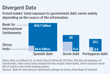 A lot of this concern was triggered by today's Wall St Journal article that showed the disparities between the sovereign debt holdings of the European banks that were reported in the European Stress Tests versus the data that came out of the BIS:
